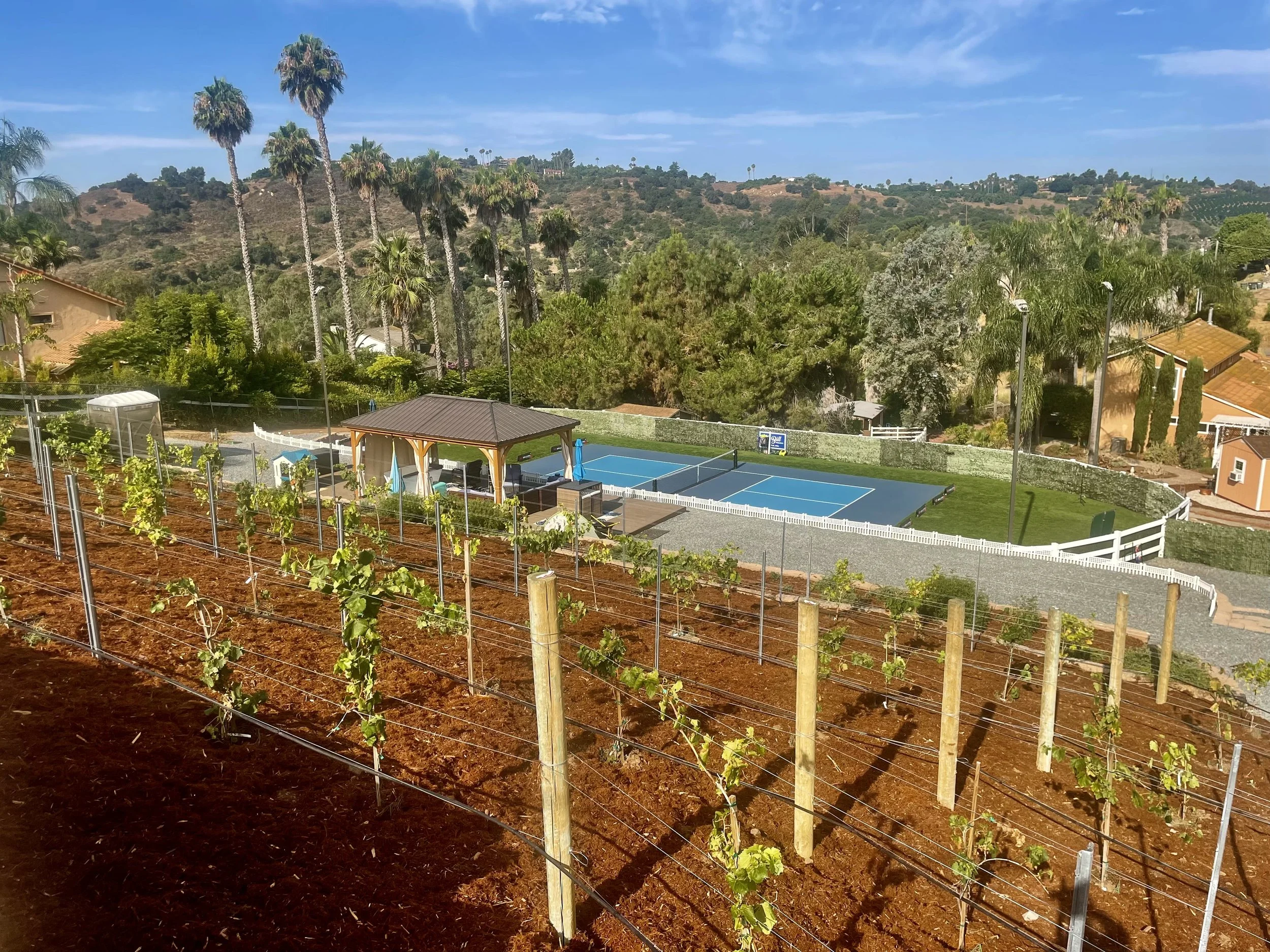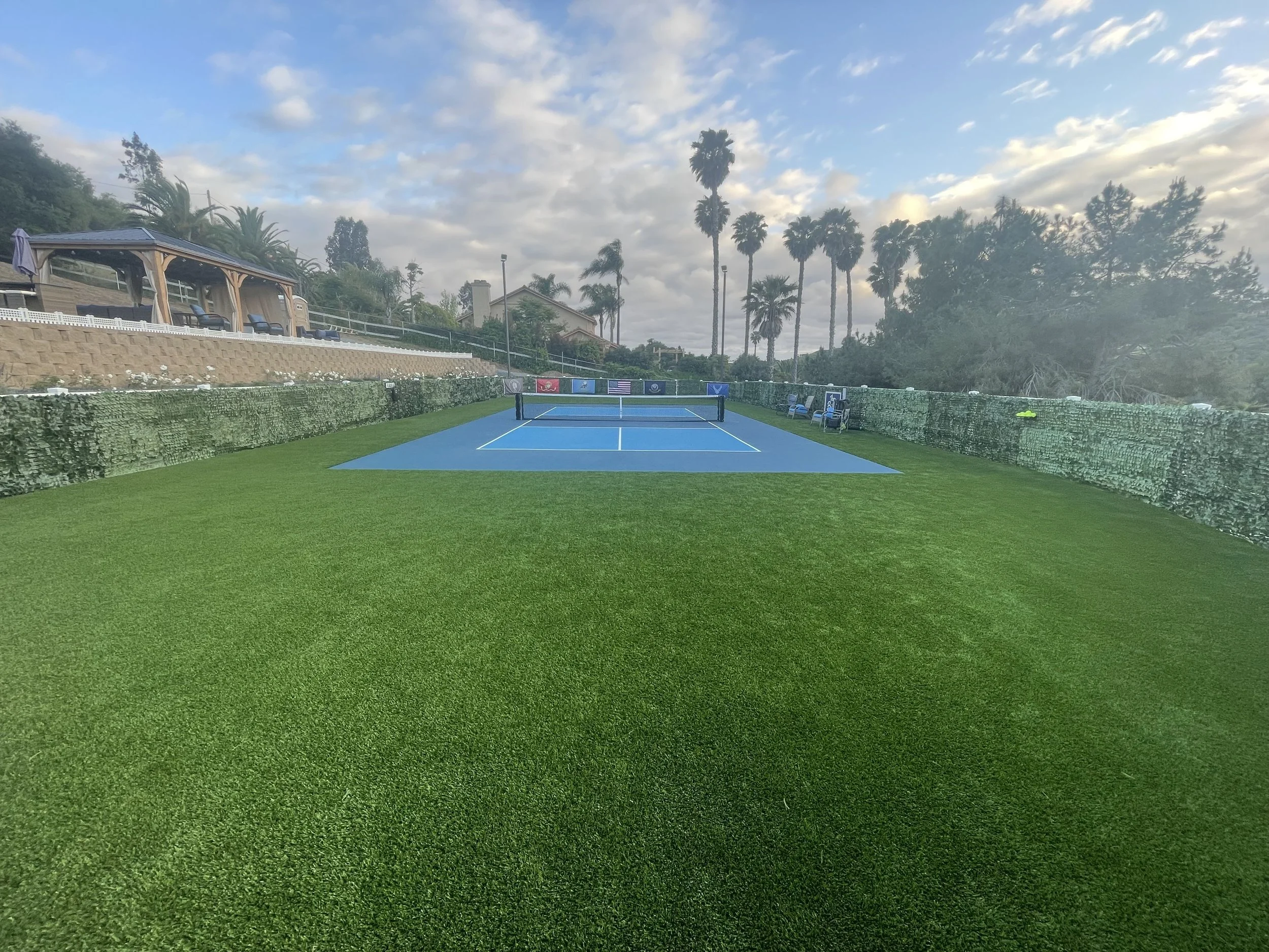 “Nestled between a valley in Fallbrook, “The Bill” is the premier court in North county San Diego. Naturally shielded by wind, it has brand new nets, lines, and paint. Attention to detail was used in constructing this one of a kind court with beautiful patio that overlooks the court. Parking is ample and the lights are high quality with a fast refresh rate!”